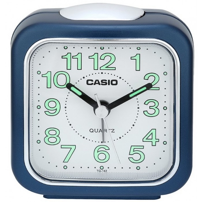 Elegancki, klasyczny budzik TQ-142 w zaokrąglonej obudowie o szerokości 7,2 cm. Zasilany baterią LR AA (paluszek). Posiada Beeper-Alarm - budzenie pulsacyjnym alarmem dźwiękowym a także luminescencyjne wskazówki delikatnie świecące w ciemności.