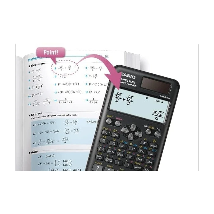 Nowoczesny kalkulator naukowy Casio FX-991ES PLUS 2ND EDITION - Nowy udoskonalony następca FX-991ES - nowy wygląd, funkcje i możliwości obliczeniowe. Dzięki rozbudowanym funkcjom i systemowi S-V.P.A.M. (wykonywanie obliczeń w kolejności zgodnej z zasadami matematyki) jest idealny dla uczniów szkół ponadgimnazjalnych oraz studentów. Zalecany przez Ministerstwo Edukacji Narodowej Seria kalkulatorów CASIO FX-ES to najpopularniejsze kalkulatory studenckie i szkolne. W serii kalkulatorów FX-ES, firma CASIO wprowadziła rewolucyjną innowację - możliwość naturalnego zapisu działań matematycznych na nowym, powiększonym ekranie. Teraz ułamek zwykły, pierwiastek czy potęga, wygląda na kalkulatorze identycznie jak na tablicy szkolnej lub w podręczniku.