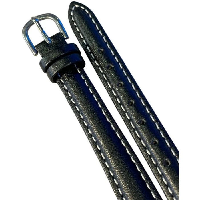 Pasek firmy BISSET BS203 koloru czarnego z białymi obszyciami wykonany jest ze skóry naturalnej o gładkiej fakturze. Szerokość paska to 12mm.