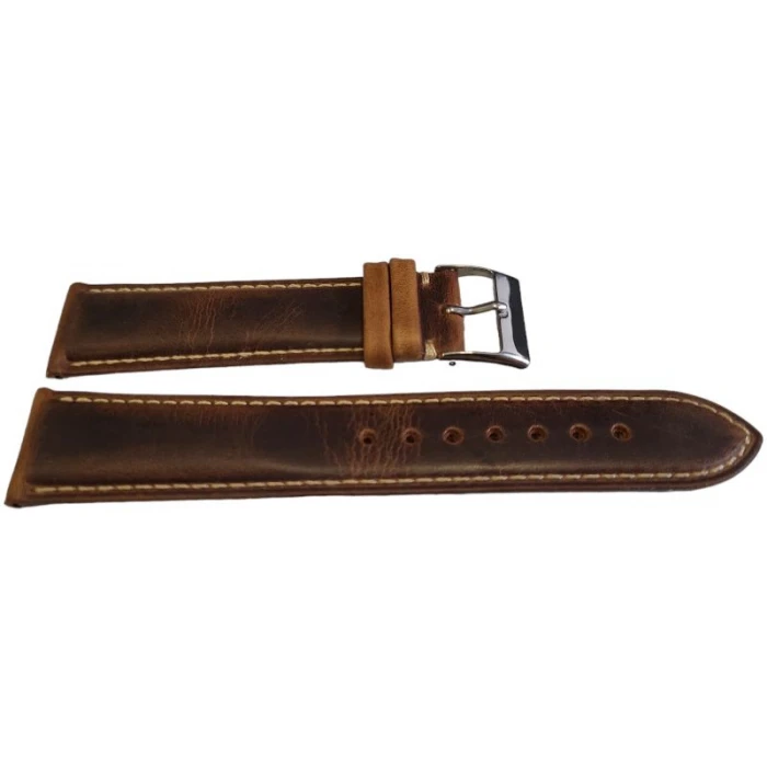 CECHY PASKA: Kolor: Brązowy; Szerokość: 20mm; Kod produktu: E51; Materiał: Skórzany; Obszycia: Kremowe