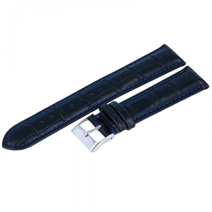 Pasek Tekla K13 to skórzany, czarny pasek z przeszyciami w kolorze niebieskim. Pasek posiada fakturę przypominającą krokodyla.