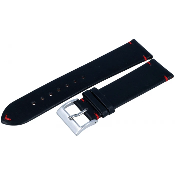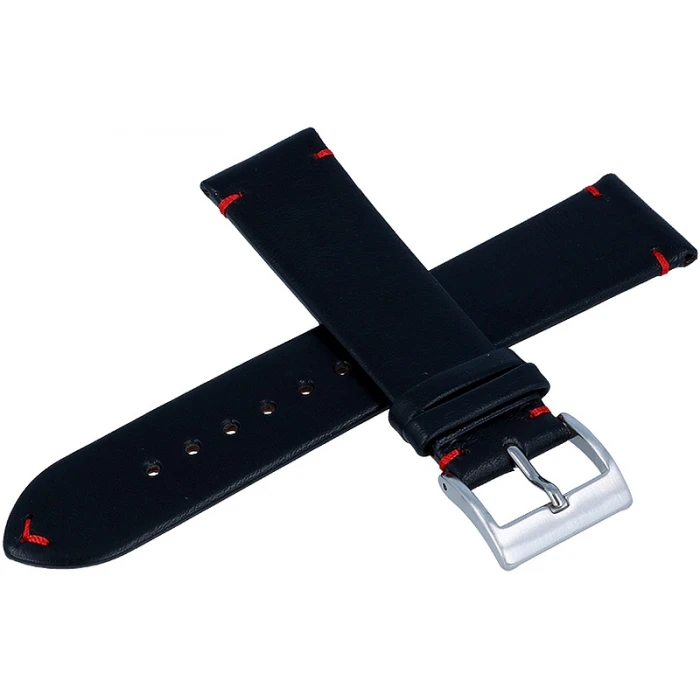 Tekla GZ12 to czarny, skórzany pasek o gładkiej fakturze ozdobiony delikatnie czerwoną nicią.