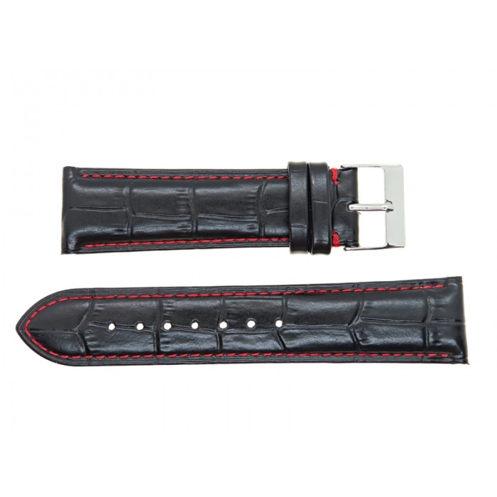 CECHY PASKA: Kolor: Czarny; Szerokość: 18mm; Kod produktu: K12; Materiał: Skórzany; Obszycia: czerwone;