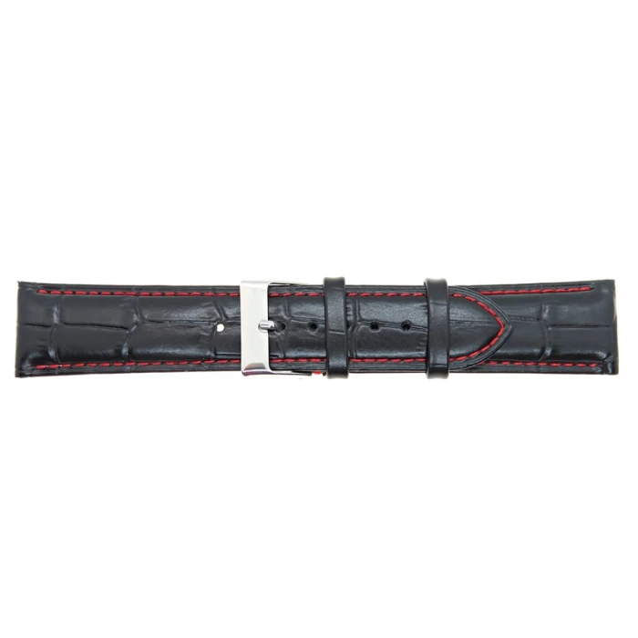 Pasek Tekla K12 to pasek skórzany o fakturze krokodyla w kolorze czarnym z czerwonymi przeszyciami.