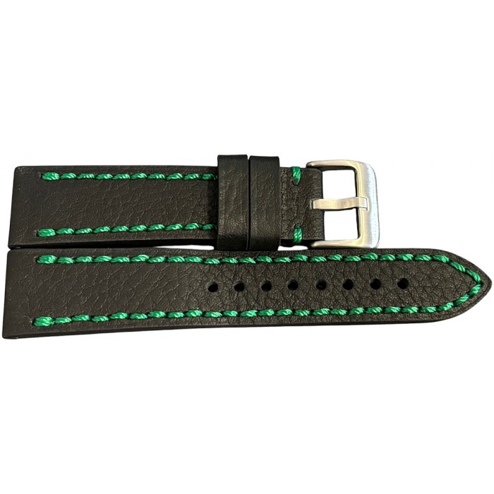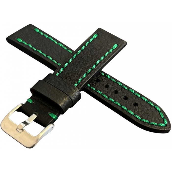 Czarny, gruby pasek z zielonymi obszyciami