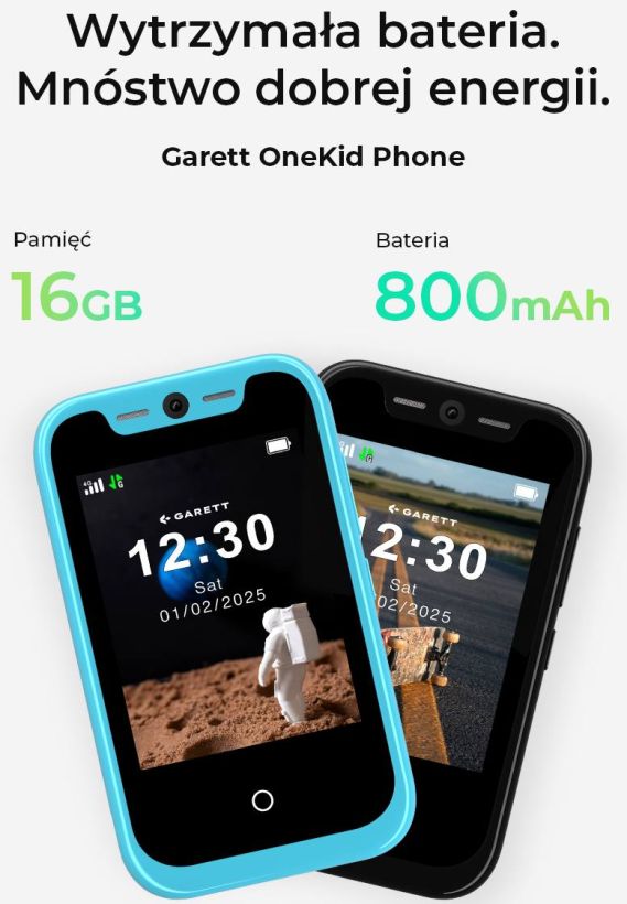 Garett OneKid Phone to skarbnica prostych radości, zaprojektowana z myślą o dziecięcych potrzebach! Wyświetlacz IPS pokazuje czytelny czas, datę i ikony jak bateria czy sygnał 4G – wszystko intuicyjne dla małego użytkownika. Aparaty z wbudowanym edytorem foto (dodaj zabawne naklejki: wielkie usta czy uszy zwierzaka!) zamieniają selfie w kreatywną zabawę, a odtwarzacz wideo i MP3 pozwalają na słuchanie bajek czy muzyki offline. Edukacyjne gry uczą angielskiego, matematyki i geografii – nauka przez zabawę, bez ekranowego uzależnienia! Dodatki jak budzik, stoper, kalendarz, kalkulator, dyktafon i licznik kroków czynią go wszechstronnym narzędziem. Aplikacja Garett One (dla Android 8.0+ i iOS 13.0+) pozwala na łatwy transfer plików i personalizację. Brak wibracji i nieograniczonego netu oznacza mniej rozproszeń – skup się na realnym świecie!