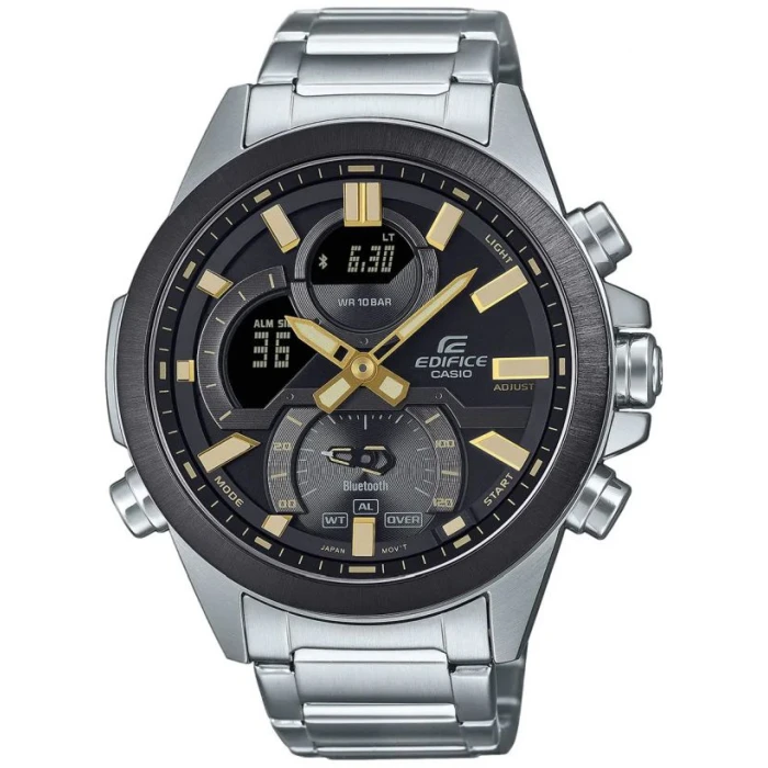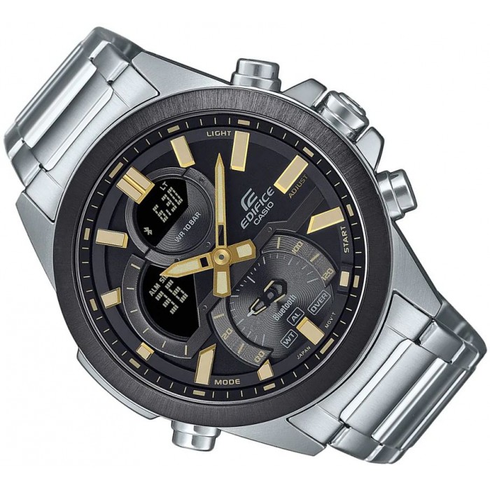 Męski model Edifice CASIO ECB-30DB-1A9EF to przede wszystkim zegarek sportowy a to o co wyróżnia ten czasomierz na tle innych to synchronizacja z telefonem poprzez Bluetooth i możliwość skorzystania z aplikacji CASIO WATCHES, aby uzyskać pełną funkcjonalność na wyciągnięcie ręki. Aplikacja zapewnia precyzyjne odmierzanie czasu bez użycia przycisków, gdy telefon znajduje się w pobliżu. Opracowany w celu zaspokojenia potrzeb zespołów wyścigowych, harmonogram czasowy synchronizuje się z aplikacją kalendarza smartfona, aby przesyłać elementy harmonogramu do telefonu. Poza tym pozwoli na automatyczną regulację czasu lub jego łatwe ustawienie m.in. czasu letniego na zimowy i odwrotnie. Do podróży po świecie nieodzownym może okazać się czas światowy (300 największych miastach świata). Dodatkowo zegarek posiada funkcje "znajdź telefon" (musi znajdować się w zasięgu Bluetooth®).