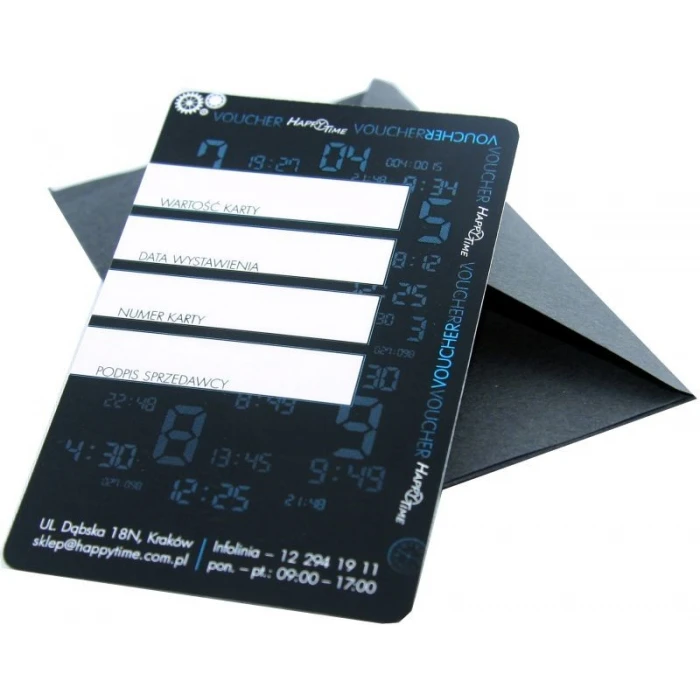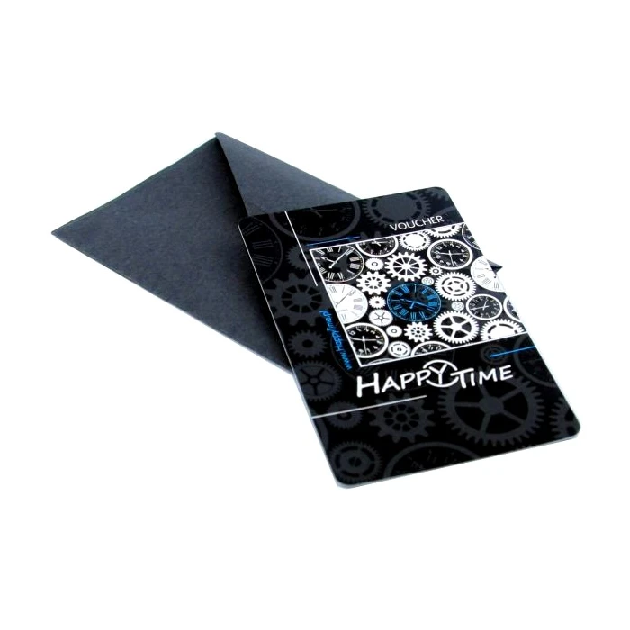 Karta podarunkowa to idealny upominek na prezent dla każdego! Spraw przyjemność bliskiej Ci osobie w postaci designerskiego vouchera bez ryzyka pomyłki. Nasze karty zostały wykonane z wysokiej jakości materiału, ze szczególną dbałością o każdy detal graficzny. Całość zapakowana jest w gustowną, czarną kopertę. Kartą upominkową Happy Time można płacić za wszystkie produkty w naszym sklepie stacjonarnym oraz internetowym. Voucher możesz zakupić w wybranej lub dowolnej kwocie poprzez zakup dowolnej ilości kuponów o różnej wartości. Voucher nie ma określonego terminu realizacji. Wybierz upominek w dowolnej kwocie już teraz! Bon można wykorzystać jednorazowo w dowolnym momencie. Zapraszamy do kontaktu z naszym personelem w przypadku dodatkowych pytań.