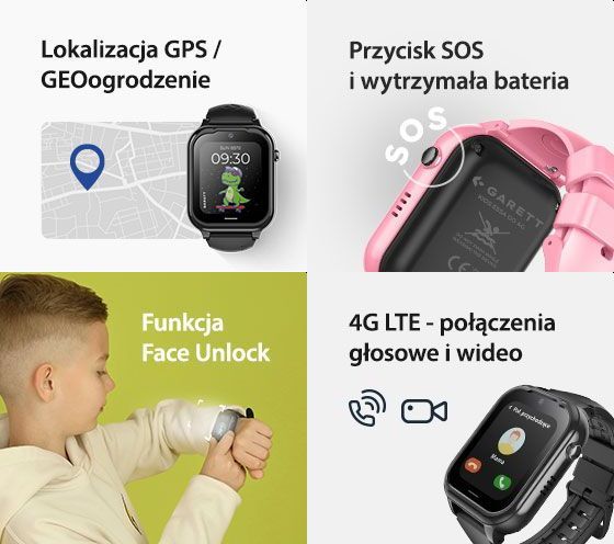 Lokalizator GPS / GEO-ogrodzenie, LTE 4G, połączenia głosowe i wideo, system Android, SOS, funkcja Face Unlock, WhatsApp i inne aplikacje