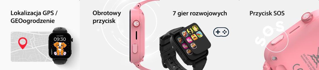 Dodatkową funkcją smartwatcha dziecięcego jest wbudowany przycisk SOS, pozwalający na szybkie połączenie z rodzicem ale także krokomierz, budzik czy możliwość zdalnego podsłuchu urządzenia.