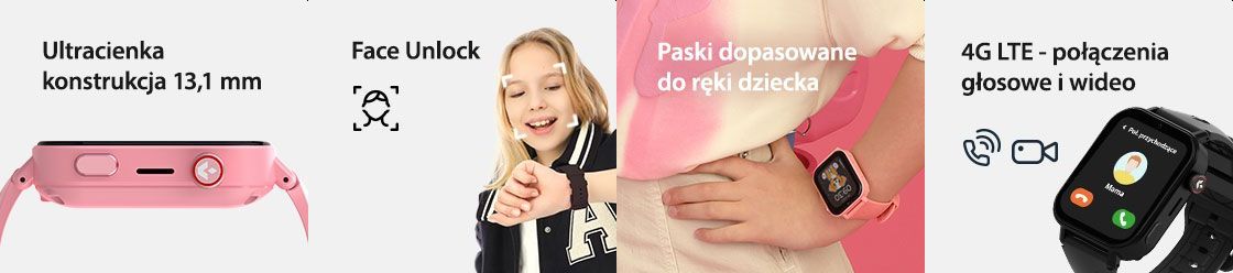 Lokalizator GPS / GEO-ogrodzenie, LTE 4G, połączenia głosowe i wideo, SOS, funkcja Face Unlock,
