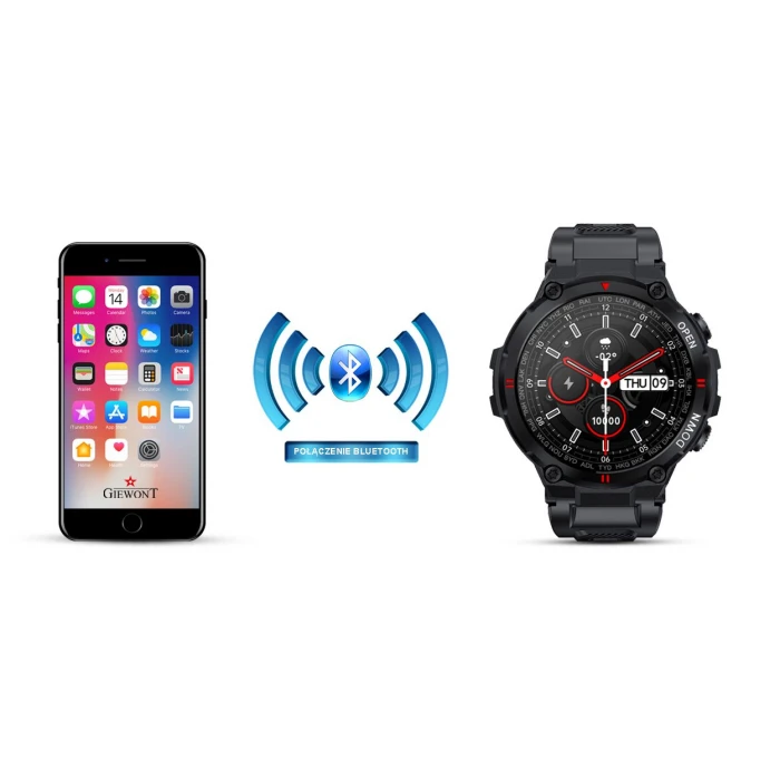 Marka Giewont to polska marka produkująca zaawansowane zegarki elektroniczne. Model łączy w sobie jakość w doskonałej cenie oraz nowoczesny, atrakcyjny wygląd. Polski producent wyposażył urządzenia w oprogramowanie zapewniające kompatybilność z topowymi urządzeniami mobilnymi pracującymi na systemie Android oraz iOS.