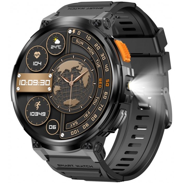 Wielofunkcyjny smartwatch Gravity posiada kopertę o średnicy 52,5mm w czarnym kolorze, czarny pasek gumowy i stalowy, pełny, dotykowy wyświetlacz i przyciski z boku koperty. Zegarek wygląda nowocześnie i elegancko dlatego sprawdzi się nie tylko podczas różnego rodzaju aktywności fizycznej, ale również na co dzień, a nawet na specjalne okazje. To co go dodatkowo wyróżnia to możliwość rozmowy przez zegarek oraz wbudowana latarka. Wysokiej jakości wbudowany głośnik i mikrofon zapewniają doskonałą jakość dźwięku.