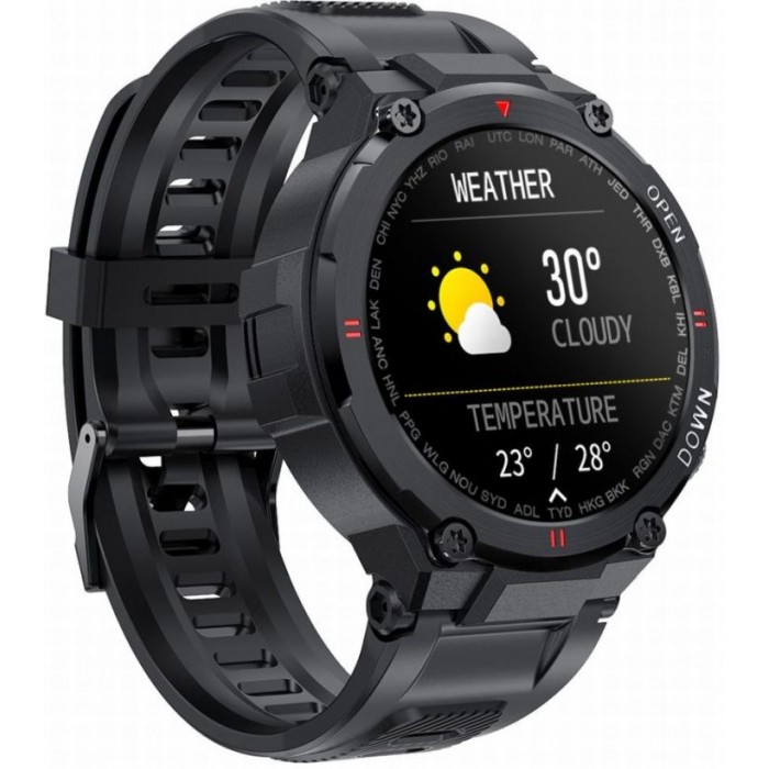 Wielofunkcyjny smartwatch Gravity posiada kopertę o średnicy 45,4mm w czarnym kolorze, czarny wygodny pasek, pełny, dotykowy wyświetlacz i 2 przyciski z boku koperty. Zegarek wygląda nowocześnie i elegancko dlatego sprawdzi się nie tylko podczas różnego rodzaju aktywności fizycznej, ale również na co dzień, a nawet na specjalne okazje. To co go dodatkowo wyróżnia to możliwość rozmowy przez zegarek!