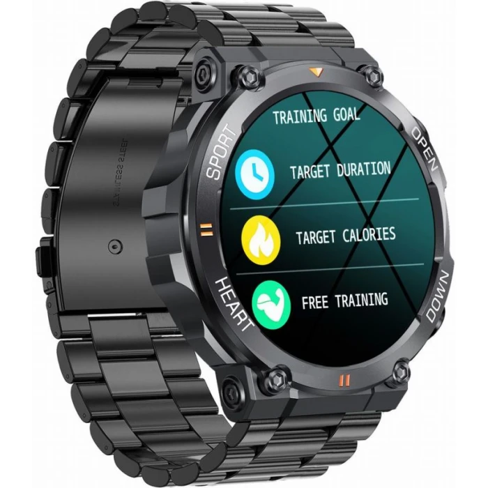 Wielofunkcyjny smartwatch Gravity posiada kopertę o średnicy 47mm w czarnym kolorze, czarną wykonaną ze stali szlachetnej bransoletę, pełny, dotykowy wyświetlacz i 2 przyciski z boku koperty. Zegarek wygląda nowocześnie i elegancko dlatego sprawdzi się nie tylko podczas różnego rodzaju aktywności fizycznej, ale również na co dzień, a nawet na specjalne okazje. To co go dodatkowo wyróżnia to możliwość rozmowy przez zegarek!