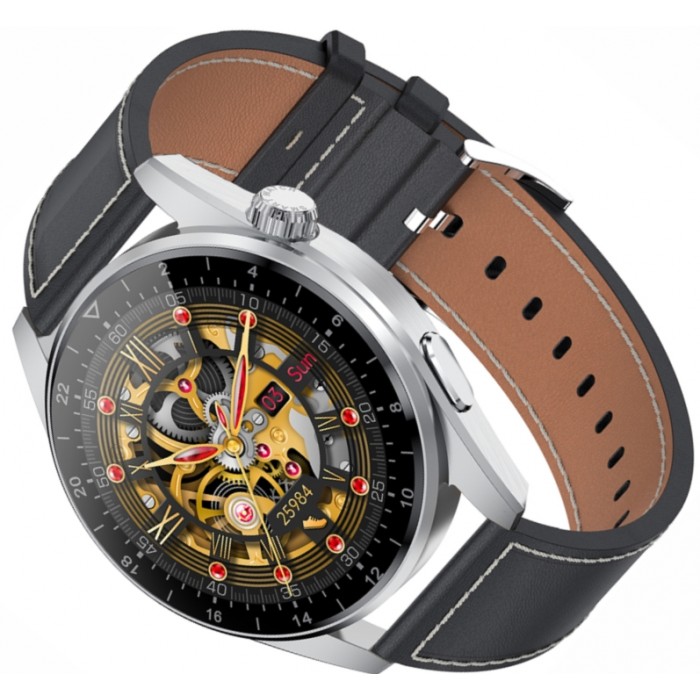 Jedną z przydatniejszych funkcji, w którą został wyposażony zegarek to możliwość odbierania i wykonywania połączeń bezpośrednio z czasomierza. Dzięki wbudowanemu głośnikowi i mikrofonowi, model doskonale zastępuje zestaw głośnomówiący, dzięki czemu możemy prowadzić rozmowy bez konieczności przerywania danej czynności. Prezentowane urządzenie oferuje nam szereg funkcji wspierających zdrowy styl życia. Przykładem jest tu alarm hydracyjny, który pomoże nam utrzymać odpowiednie nawodnienie podczas treningu a powiadomienie o bezruchu umożliwi zadbanie o odpowiednią dawkę ruchu w ciągu dnia. Ponad to smartwatch wyposażony jest aż w 20 rozbudowanych trybów sportowych, w których główną rolę pełni monitor pracy serca, licznik spalanych kalorii oraz krokomierz. Po każdorazowym uruchomieniu, a następnie zatrzymaniu trybów treningowych, zegarek przekaże wszystkie dane do aplikacji FitCloudPro. Przydatną funkcją jest również prognoza pogody, dzięki której unikniemy zaskoczenia przez deszcz i dobierzemy odpowiedni ubiór do temperatury, a dzięki integracji urządzenia z telefonem uruchomimy sygnał dźwiękowy, który pozwoli bez problemu odnaleźć nasz smartphone. Oprócz nowoczesnych funkcji, czasomierz jest precyzyjnie dopracowany pod względem wyglądu. Estetyka i klasa to cechy, którymi wyróżnia się marka. Okrągły kształt koperty oraz klasyczny skórzany pasek idealnie współgrają ze sobą, przez co zegarek pięknie prezentuje się na ręce. Dodatkowy, wymienny pasek z tworzywa sztucznego doskonale sprawdzi się podczas biegania czy jazdy na rowerze. Jest łatwy do czyszczenia, antyalergiczny, elastyczny i wygodny. Całość tworzy przepiękny, modny zestaw idealny na prezent dla wyjątkowej osoby.
