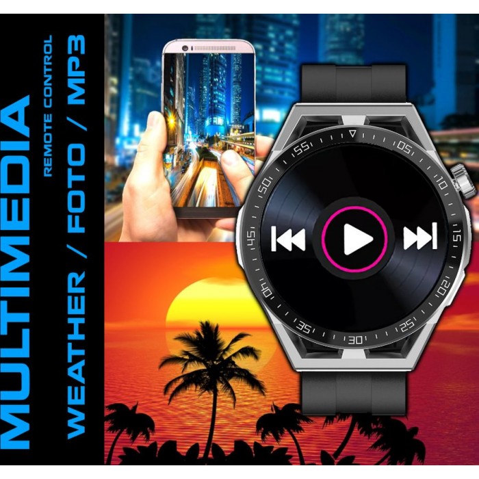 Wyposażając swoje zegarki w coraz to nowe funkcje, smartwatch RNCE88 posiada możliwość odbierania i wykonywania połączeń bezpośrednio z czasomierza. Dzięki wbudowanemu głośnikowi i mikrofonowi, model z powodzeniem zastępuje zestaw głośnomówiący, dlatego możemy prowadzić rozmowy bez konieczności przerywania wykonywanej czynności. Dodatkowo urządzenie posiada możliwość ładowania bezprzewodowego, co z pewnością ułatwia użytkowanie. Smartwatch oferuje nam szereg nowoczesnych funkcji oraz tych wspierających zdrowy styl życia. Przykładem jest tu przypomnienie o wypiciu wody, które pomoże nam utrzymać odpowiednie nawodnienie a powiadomienie o bezruchu umożliwi zadbanie o odpowiednią dawkę ruchu w ciągu dnia. Ponad to zegarek posiada 12 rozbudowanych trybów sportowych, w których główną rolę pełni monitor pracy serca, licznik spalanych kalorii oraz krokomierz. Po każdorazowym uruchomieniu, a następnie zatrzymaniu trybów treningowych, zegarek przekaże wszystkie dane do aplikacji DaFit. Daje nam to możliwość monitowania postępów w pracy nad kondycją. Aktualne dane pogodowe pozwolą uniknąć zaskoczenia przez deszcz i dobierać odpowiedni ubiór do temperatury. Monitor snu pozwoli na kontrolowanie długości i jakości naszego odpoczynku. Nie zabrakło również takich dodatkowych funkcji jak alarm czy timer, a powiadomienia z popularnych portali społecznościowych sprawią, że zawsze będziemy na bieżąco. Oprócz nowoczesnych funkcji, czasomierz jest precyzyjnie dopracowany pod względem wyglądu. Styl i klasa to cechy, którymi wyróżnia się marka. Okrągła koperta oraz elegancka bransoleta to idealne połączenie, które sprawdzi się na co dzień a dzięki dodatkowemu, silikonowemu paskowi zegarek doskonale sprawdzi się podczas treningu czy innej aktywności fizycznej.