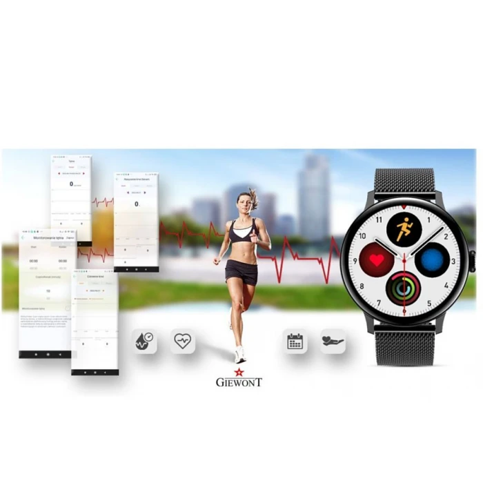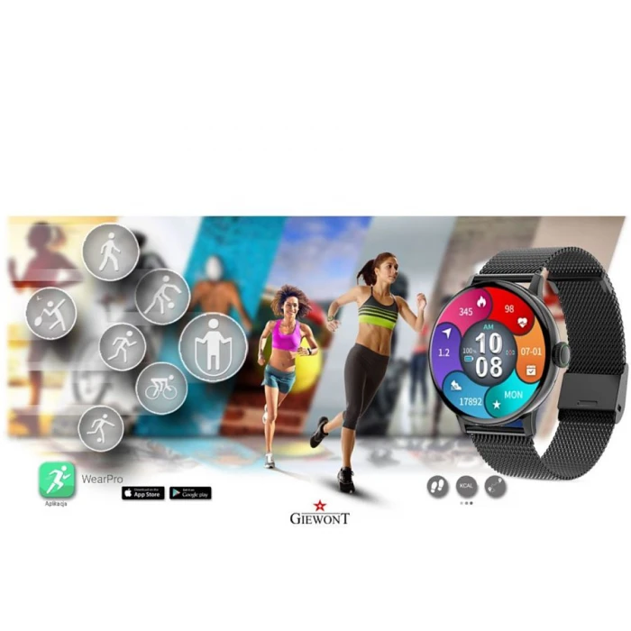 Marka Giewont to polska marka produkująca zaawansowane zegarki elektroniczne. Model łączy w sobie jakość w doskonałej cenie oraz nowoczesny, atrakcyjny wygląd. Zegarki wyposażono w oprogramowanie zapewniające kompatybilność z topowymi urządzeniami mobilnymi pracującymi na systemie Android oraz iOS.