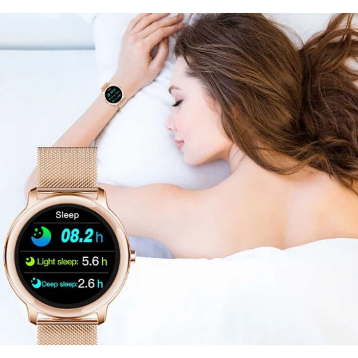 Zegarek elektroniczny Rubicon RNBE66 to najnowszy model tego japońskiego producenta. W całości wykonany z hipoalergicznej stali szlachetnej w kolorze różowozłotym na stalowej bransolecie typu mesh. Dzięki zastosowaniu nowoczesnych rozwiązań w zegarku umieszczono wyświetlacz TFT IPS full touch round screen o przekątnej 1.1" cala w pełni dotykowy o rozdzielczości 240x240 pikseli zapewnia jakość HD, optymalną przejrzystość oraz czytelność, nawet przy intensywnym świetle słonecznym.