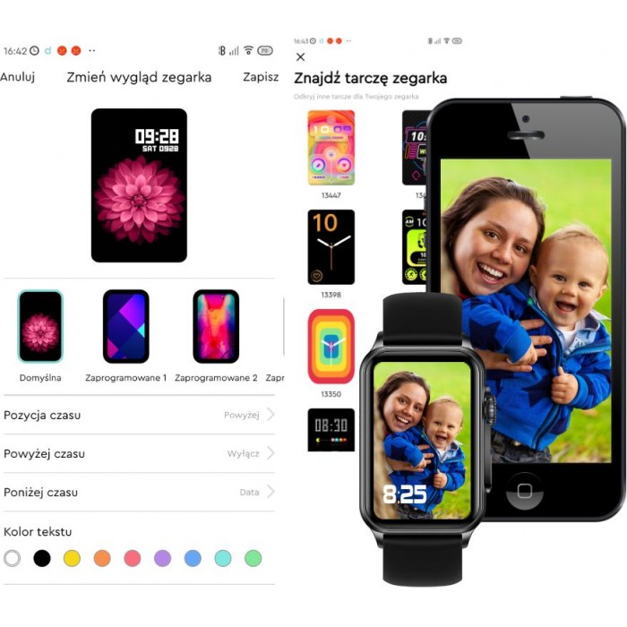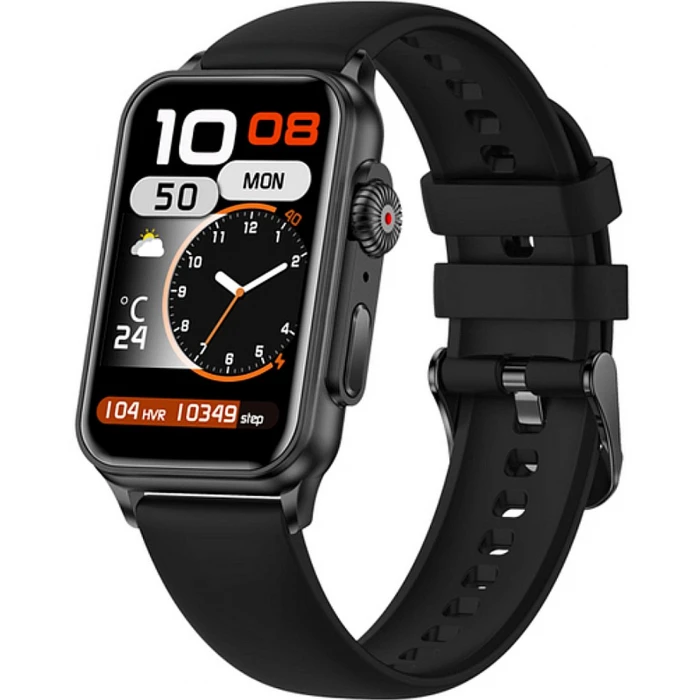 Jedną z przydatniejszych funkcji, którą posiada prezentowany model jest możliwość odbierania i wykonywania połączeń bezpośrednio z czasomierza. Dzięki wbudowanemu głośnikowi i mikrofonowi, model z powodzeniem zastępuje zestaw głośnomówiący, dlatego możemy prowadzić rozmowy bez konieczności przerywania wykonywanej czynności. Ponad to wychodząc na przeciw oczekiwaniom użytkowników zegarek wyposażono w szereg funkcji propagujących zdrowy styl życia. Doskonałym przykładem jest tu przypomnienie o wypiciu wody, który pomoże nam utrzymać odpowiednie nawodnienie a powiadomienie o bezruchu umożliwi zadbanie o odpowiednią dawkę ruchu w ciągu dnia. Ponad to smartwatch posiada ponad 120 trybów sportowych, w których główną rolę pełni monitor pracy serca, licznik spalanych kalorii oraz krokomierz. Po każdorazowym uruchomieniu, a następnie zatrzymaniu trybów treningowych, zegarek przekaże wszystkie dane do aplikacji DaFit, gdzie w każdej chwili może skontrolować nasze postępy w pracy nad kondycją fizyczną. Model posiada możliwość pomiaru pulsu, ciśnienia oraz natlenienia krwi co pozwoli szybko wyłapać nieprawidłowości w pomiarze a specjalny kalendarz umożliwia śledzenie cyklu miesiączkowego, co z pewnością docenią Panie. Aktualne dane pogodowe, pozwolą uniknąć zaskoczenia przez deszcz i dobrać odpowiedni ubiór do temperatury a funkcja znajdź urządzenie pomoże szybko odnaleźć smartwatch kiedy się gdzieś zawieruszy. Oprócz nowoczesnych, przydatnych funkcji, czasomierz jest precyzyjnie dopracowany pod względem wyglądu. Prostokątna koperta w czarnym macie oraz silikonowy pasek w tej samej barwie idealnie współgrają ze sobą, przez co zegarek pięknie prezentuje się na ręce. Całość tworzy modny zestaw idealny na prezent dla wyjątkowej osoby.