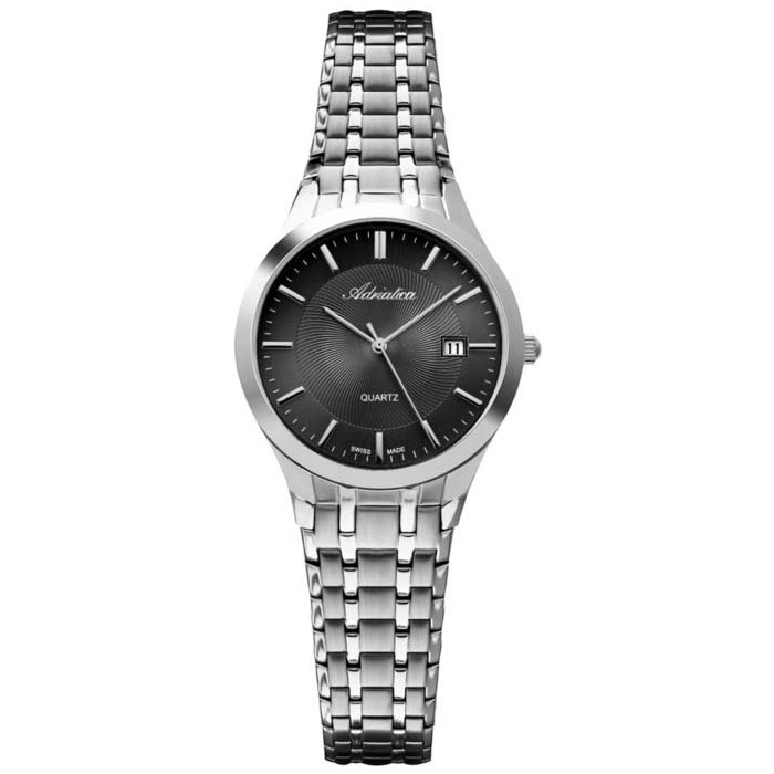 Zegarek ADRIATICA A3136.5116Q to ekskluzywna propozycja dla prawdziwie stylowych kobiet. Model ten będzie stanowił oryginalną ozdobę nadgarstka, która podkreśli zarówno casualowe, jak i oficjalne stroje. Czasomierz wyposażono w tarczę o czarnym kolorze. Po prawej stronie znajduje się datownik dni miesiąca, dzięki któremu nie musisz sięgać po kalendarz, za każdym razem, gdy tylko chcesz sprawdzić datę. Cyferblat przykryto szafirowym szkiełkiem, które jest odporne na zarysowania. Porządna bransoleta oraz okrągła koperta wykonane są ze stali szlachetnej, czyli bezpiecznego dla skóry materiału. Zegarek ADRIATICA A3136.5116Q ma wodoszczelność klasy 5 ATM, dzięki czemu ma on odporność na drobne zachlapania. Urządzenie napędzane jest przez mechanizm kwarcowy Eta F04.