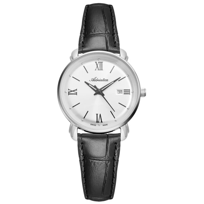 Zegarek ADRIATICA A3184.5263Q to klasyczny model w stylu vintage. Chętnie sięgają po niego kobiety, które pasjonują się ubiorem w charakterze retro. Czasomierz wyposażono w białą tarczę, na której zlokalizowano czarne indeksy w formie cyfr rzymskich. Po prawej stronie zlokalizowano datownik dni miesiąca, dzięki któremu w każdej chwili możesz sprawdzić aktualną datę. Aby skutecznie ochronić powierzchnię cyferblatu przed uszkodzeniami, producent zastosował przezroczyste, mineralne szkiełko. Ważnym elementem budowy zegarka jest również jego koperta, która w tym przypadku została wykonana z bardzo trwałego materiału, jakim jest nierdzewna stal szlachetna. Pod nią zlokalizowano niezawodny mechanizm kwarcowy Ronda 585. Klasa wodoszczelności tego urządzenia pozwala na lekkie zachlapania, np. podczas mycia rąk. Damski zegarek ADRIATICA A3184.5263Q zawieszono na wygodnym, skórzanym pasku.