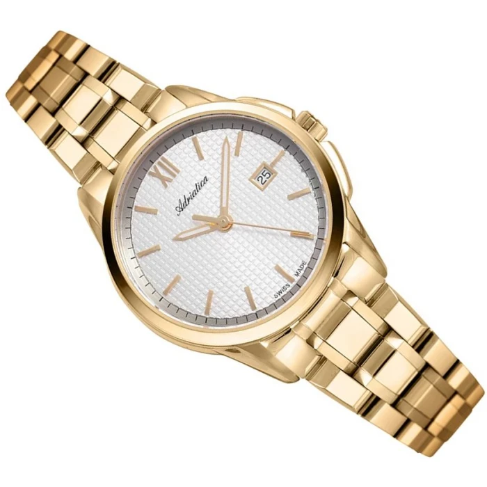 Zegarek damski A3190.1163Q to propozycja dla eleganckich kobiet, ceniących sobie klasycyzm designu. Ponadczasowy model w ekskluzywnym złotym kolorze i wyróżniającą się białą, ciekawie stylizowaną tarczą.