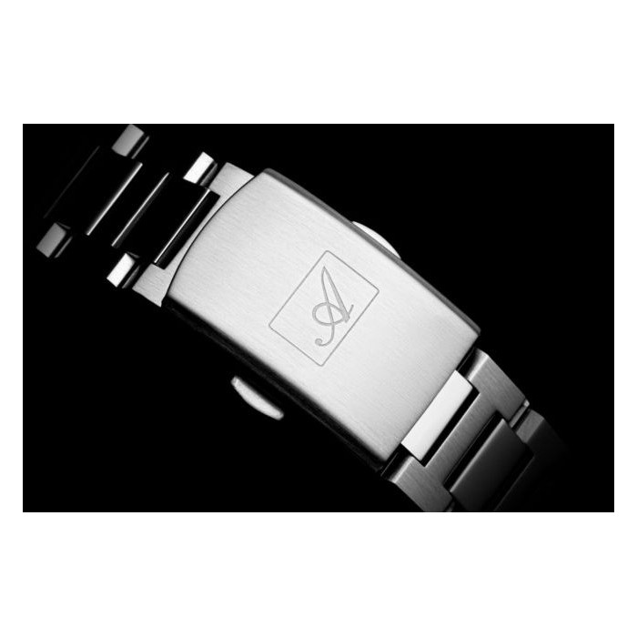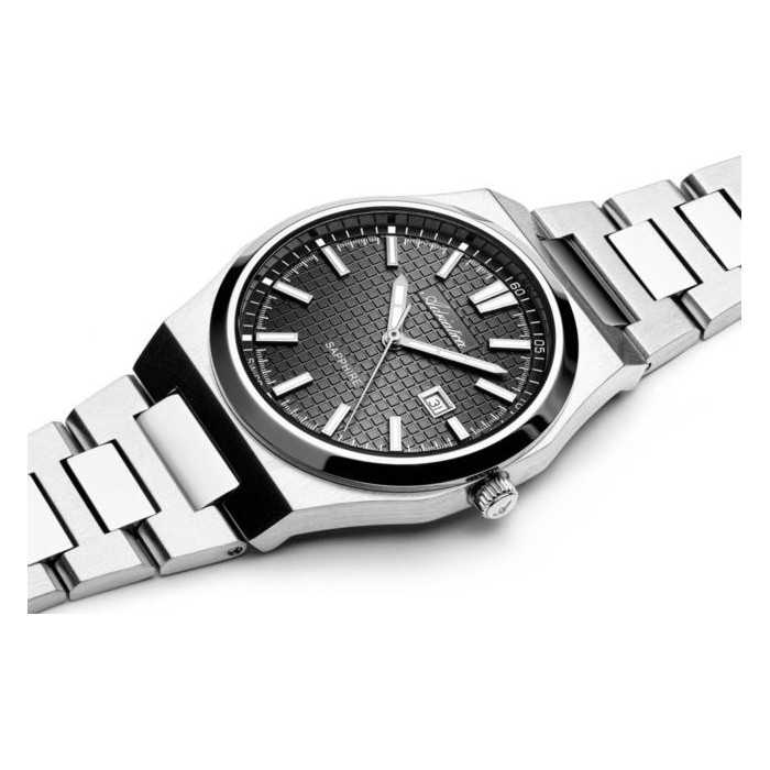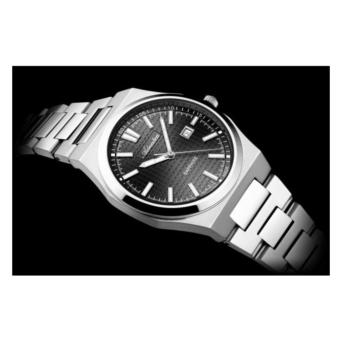 Dbając o komfort użytkowania, do zabezpieczenia tarczy użyto szkiełka szafirowego, odpornego na zarysowania. Cyferblat ma czarny kolor oraz ciekawy wzór, który z pewnością przykuje uwagę. Srebrne wskazówki oraz indeksy godzinowe zostały pokryte specjalną powłoką, dzięki której odczyt czasu w ciemności nie stanowi problemu. Dodatkowo, na godzinie 3:00 umieszczono datownik, wskazujący dzień miesiąca.