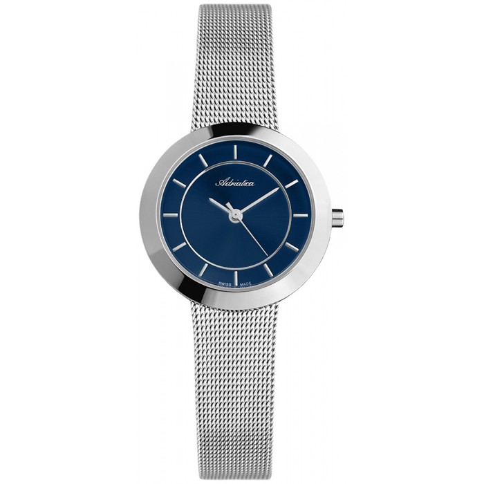 Zegarek ADRIATICA A3645.5115Q to klasyczny i subtelny model, który spodoba się szczególnie kobietom, które szukają uniwersalnego dodatku na wszystkie okazje. Okrągła srebrna koperta wraz z bransoletą typu mesh zostały wykonane z antyalergicznej stali szlachetnej. Granatowy cyferblat jest niezwykle elegancki i idealnie komponuje się ze srebrną oprawą czasomierza. Urządzenie napędzane jest przez niezawodny i precyzyjny system kwarcowy Ronda 763 Swiss Made, który daje gwarancje długoletniej pracy tego modelu. Tarcza zegarka zabezpieczona jest mineralnym utwardzanym szkiełkiem, które jest odporne na wszelkie zarysowania. Warto również wspomnieć o klasie wodoszczelności zegarka ADRIATICA A3645.5115Q, która wynosi 3 ATM, co pozwala na delikatne zachlapania powstałe w trakcie mycia czy pielęgnacji dłoni.