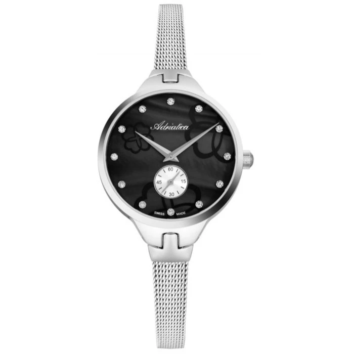 Zegarek ADRIATICA A3719.514MQ odznacza się wysoką jakością wykonania, dopracowaną stylistyką i bezawaryjnym działaniem. Wybierają go kobiety, które od swojego czasomierza oczekują czegoś więcej, niż tylko zwykłej ozdoby, która towarzyszy im każdego dnia. Kopertę i bransoletę wyprodukowano z nierdzewnego i antyalergicznego materiału, jakim jest stal szlachetna. Tarcza wykonana z masy perłowej w wyróżniającym się czarnym kolorze została zabezpieczona szkiełkiem mineralnym odpornym na zarysowania. Dodatkowo umieszczono na niej błyszczące się cyrkonie, które nadają urządzeniu niepowtarzalnego charakteru. Zegarek ADRIATICA A3719.514MQ działa dzięki sprawdzonemu mechanizmowi kwarcowemu Eta 902 Swiss Made, a wodoszczelność na poziomie 3 ATM (30 metrów) pozwala na delikatne zachlapania powstałe podczas mycia lub pielęgnacji dłoni.