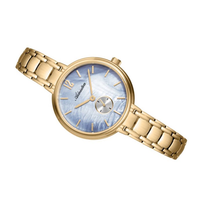Zegarek ADRIATICA A3726.115ZQ wykończony jest w ekskluzywnym kolorze złota. Produkt ten wykonano ze stali szlachetnej, czyli bardzo trwałego i odpornego na korozję materiału. Błękitna tarcza z indeksami liniowymi przykryta jest przez przejrzyste szkiełko mineralne, które chroni cyferblat przed uszkodzeniami. Urządzenie będzie świetnym wyborem do noszenia każdego dnia. Z pewnością wzbogaci i urozmaici każdą stylizację. Zegarek ADRIATICA A3726.115ZQ jest chętnie wybierany przez osoby, które na pierwszym miejscu stawiają na jakość. Produkt działa dzięki mechanizmowi kwarcowemu Eta 902, który wyprodukowano w Szwajcarii. Jego wodoszczelność pozwala na sporadyczne zachlapania, ponieważ zgodnie z deklaracją producenta, wynosi ona 3 ATM (30 metrów).