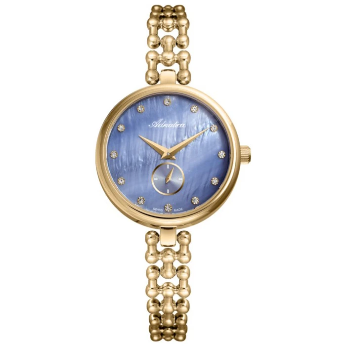 Zegarek ADRIATICA A3727.114BQ to produkt stworzony z myślą o urozmaiceniu najmodniejszych, kobiecych stylizacji. Czasomierz wykonano z wysokiej jakości materiału, czyli stali szlachetnej, którą pokryto złotym PVD. Niebieska tarcza z indeksami w formie mieniących się kryształków. Całość przykryto mineralnym szkiełkiem o doskonałej odporności na stłuczenia. Za niezakłócone działanie zegarka odpowiada kwarcowy mechanizm Eta 902. Urządzenie wyprodukowano w Szwajcarii, czyli kraju, który słynie z pasji do zegarmistrzostwa. Klasa wodoszczelności tego czasomierza wynosi 3 ATM, czyli 30 metrów (3 bar). Możesz więc nosić go każdego dnia, nie martwiąc się o sporadyczne zachlapania. Zegarek ADRIATICA A3727.114BQ to doskonały wybór dla kobiet w każdym wieku, również na prezent.