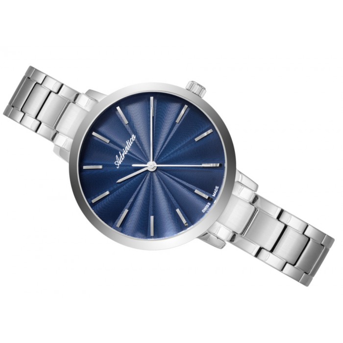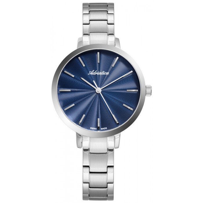 Zegarek ADRIATICA A3740.5115Q napędzany jest niezwykle precyzyjnym systemem kwarcowym Ronda 763 Swiss Made, który daje gwarancje długoletniego i bezawaryjnego użytkowania produktu. Model wykonany został z antyalergicznej stali szlachetnej w kolorze srebrnym. Niebieska tarcza delikatnie pobłyskuje, a proste indeksy w miejscu godzin nadają temu czasomierzowi niezwykłej klasy. Cyferblat zabezpieczony został szkłem mineralnym, charakteryzującym się odpornością na wszelkie zarysowania. Warto również wspomnieć o klasie wodoszczelności, jaką zastosował producent w tym modelu, wynosi ona 3 ATM i chroni zegarek ADRIATICA A3740.5115Q przed przypadkowym i delikatnym zachlapaniem wodą w trakcie mycia czy pielęgnacji dłoni.