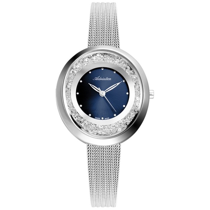 Zegarek ADRIATICA A3771.5145QZ wykonany jest z wysokiej jakości stali szlachetnej, która jest materiałem w 100% bezpiecznym dla skóry. Unikalna tarcza wykończona jest w granatowym odcieniu, który zestawiono z migoczącą taflą złożoną ze srebrnych cyrkonii. Jednolite, mineralne szkiełko skutecznie zabezpiecza powierzchnię cyferblatu, a dodatkowo, zapewnia doskonałą przejrzystość. Sercem czasomierza jest niezawodny mechanizm kwarcowy Ronda 751/775. Wodoszczelność produktu wynosi 3 ATM, dzięki czemu jest on odporny na lekkie zachlapania, krople wody lub pot. Zegarek ADRIATICA A3771.5145QZ będzie świetnym wyborem na prezent dla bliskiej osoby lub samej siebie na każdą szczególną okazję. Co więcej, w zestawie otrzymasz także oryginalne pudełko, instrukcję w języku polskim, 24 miesiące gwarancji i rabat na kolejne zamówienie w HappyTime.
