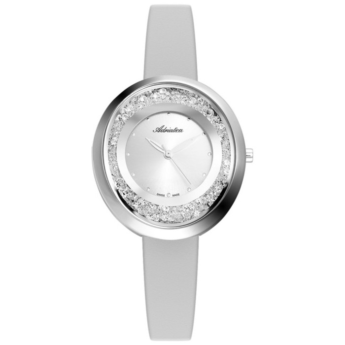 Zegarek ADRIATICA A3771.5G43QZ to wyjątkowy, damski model, który jest prawdziwym ulubieńcem stylowych kobiet o nieprzeciętnym guście. Utrzymany jest on w kolorze srebra, dzięki czemu z pewnością dopasuje się do stonowanych, jak i odważnych stylizacji. Piękna, dwukolorowa tarcza wzbogacona jest o tysiące świecących drobinek, które mienią się w promieniach światła. Całość przykryta jest mineralnym szkiełkiem, cechującym się świetną przejrzystością oraz odpornością na stłuczenia. Koperta wykonana ze stali szlachetnej skrywa niezawodny mechanizm kwarcowy Ronda 751/775. Waga urządzenia wynosi 40 g, dzięki czemu wygodnie leży ono na damskim nadgarstku. Zegarek ADRIATICA A3771.5G43QZ ma wodoszczelność klasy 3 ATM, czyli 30 metrów. Oznacza to, że jest on odporny na drobne zachlapania i kontakt z kroplami wody i potu.