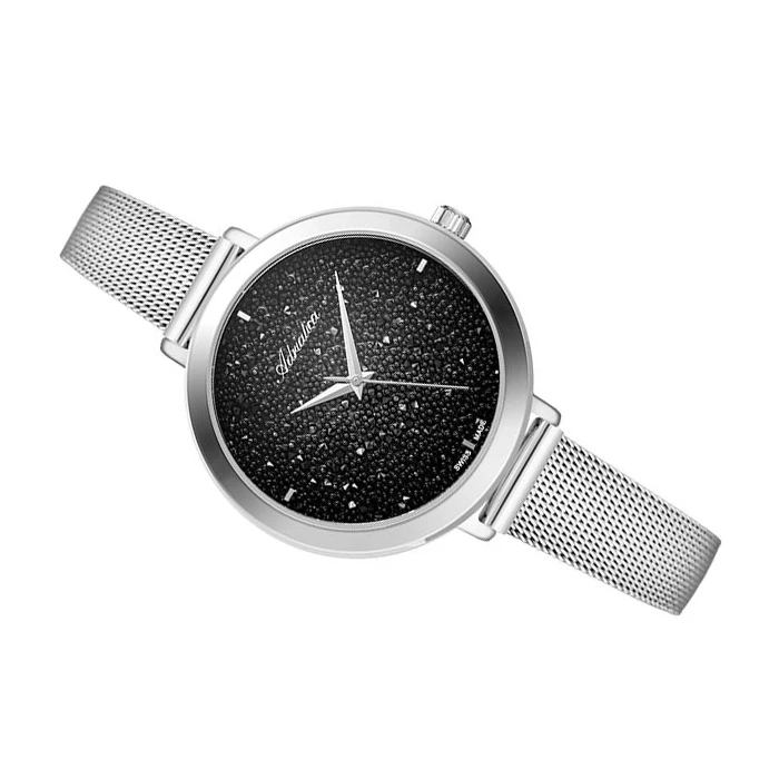 Zegarek ADRIATICA A3787.5116Q to doskonała propozycja dla kobiet, które lubią klasyczne i delikatne dodatki. Model łączy w sobie dwa uniwersalne kolory, czyli czerń i srebro. Dzięki takiemu połączeniu możemy być pewni, że dopasujemy go do stylizacji na każdą okazję. Srebrna koperta wraz z bransoletą typu mesh wykonane są z bardzo trwałego materiału, jakim jest stal szlachetna. Cyferblat w kolorze czerni sprawia wrażenie stworzonego z tysiąca mieniących się kryształków, a zabezpieczony jest przez szkiełko mineralne, które świetnie chroni przed zarysowaniami. Zegarek ADRIATICA A3787.5116Q napędzany jest przez szwajcarski mechanizm kwarcowy Ronda 783, dlatego możemy być pewni o jego bezawaryjność. Wodoszczelność w tym modelu wynosi 3 ATM i pozwala na sporadyczny kontakt z kroplami wody (mycie i pielęgnacja dłoni, deszcz).
