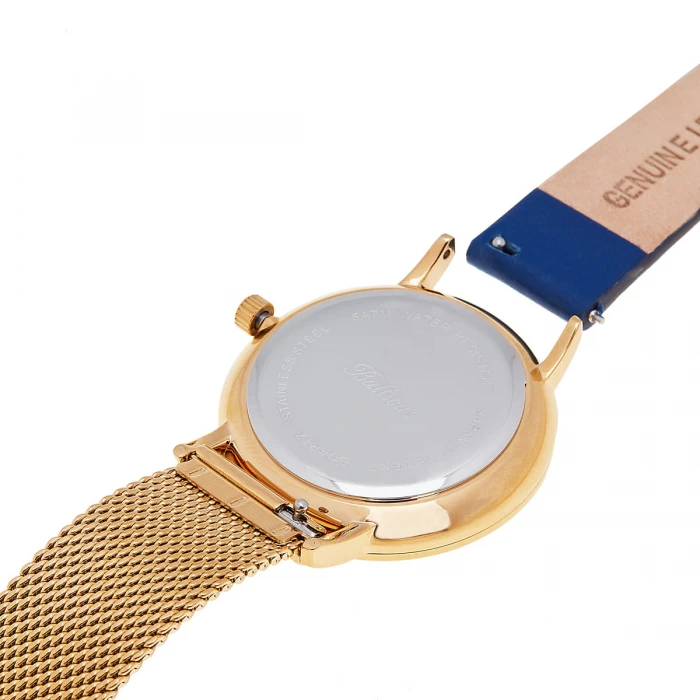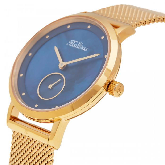Zegarek BLT-BALNSGNBL wyposażony jest w mechanizm kwarcowy Miyota zasilany baterią. Koperta i bransoleta w kolorze złota zostały wykonane z wysokiej jakości stali szlachetnej 316L, gwarantującej trwałość, odporność na korozję oraz działanie czynników atmosferycznych. Wodoszczelność na poziomie 5 ATM chroni przed zachlapaniami i krótkotrwałym zanurzeniem w wodzie. Szkiełko szafirowe zapewnia doskonałą przejrzystość, jest odporne na zarysowania oraz zmiany temperatury i działanie rozpuszczalników.