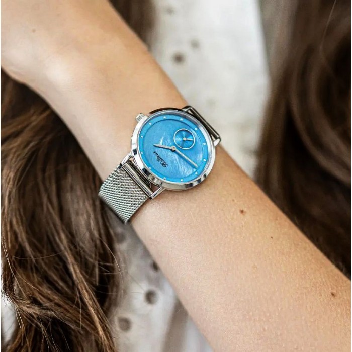 Limitowany zegarek damski Gwiezdny Pył - Niebieska Masa Perłowa. W zestawie z niebieskim paskiem skórzanym.
