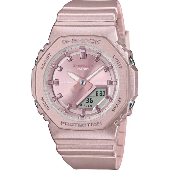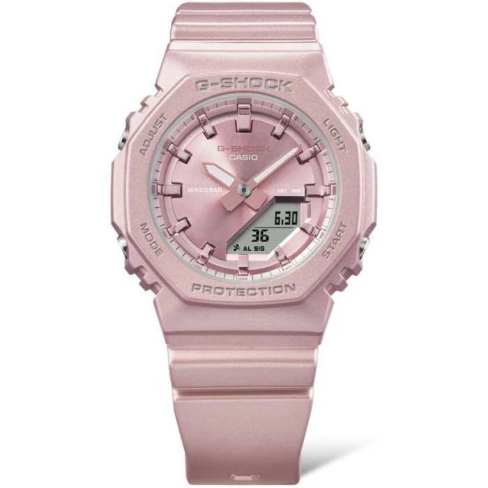 Sportowy, damski zegarek CASIO G-shock GMA-P2100ST-4AER Sunset Dial zaprojektowany przez japońskich inżynierów. Głównym celem przy jego tworzeniu było wykonanie zegarka damskiego w taki sposób, aby ten był wyjątkowo odporny na wstrząsy, uderzenia, wibracje, pyły czy wysokie ciśnienie. Kolorystyka przykuwa uwagę głębią i wymiarem. Wykonany z hipoalergicznego tworzywa, które jest niezwykle trwałe a jednocześnie lekkie i komfortowe w użytkowaniu. Wodoszczelny na poziomie 20 atm - można w nim pływać i nurkować. Modny ale i bardzo solidny oraz w pełni wodoszczelny zegarek sportowy z obudową w różowym kolorze dla kobiet aktywnych, lubiących podkreślić swój indywidualny styl.