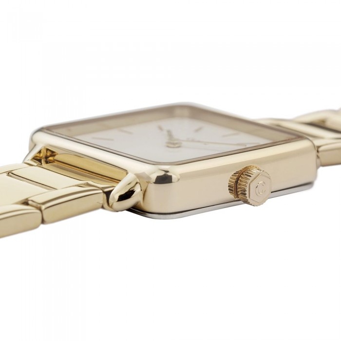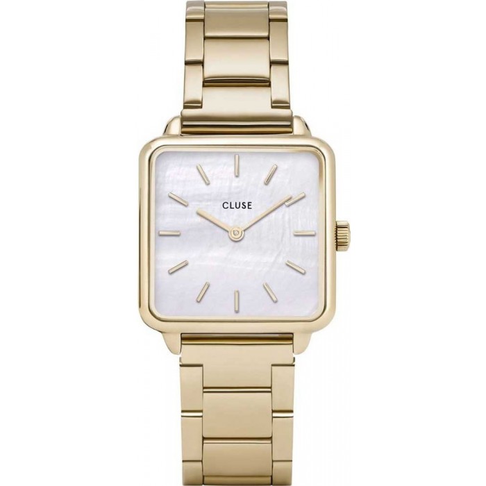 Zegarek CLUSE La Tétragone Three Link CL60026S to piękny model dla kobiet o wyszukanym guście. Dzięki połączeniu wysokiej jakości komponentów oraz nowoczesnego designu mamy pewność, że obok takiego czasomierza nikt nie przejdzie obojętnie. Czasomierz ten zwraca szczególną uwagę dzięki tarczy wykonanej z masy perłowej. Wokół niej znajduje się koperta wykonana ze stali szlachetnej, którą pokrywa PVD w odcieniu złota. Cyferblat, na którym znajdują się indeksy w formie krótkich linii, przykryty jest szkiełkiem mineralnym. Dzięki temu nie musisz martwić się o typowe zarysowania lub inne uszkodzenia. Model ten zawieszony jest na solidnej bransolecie. Damski zegarek CLUSE La Tétragone Three Link CL60026S napędzany jest dzięki zastosowaniu mechanizmu kwarcowego. Jego wodoszczelność wynosi 30 metrów, czyli 3 ATM.