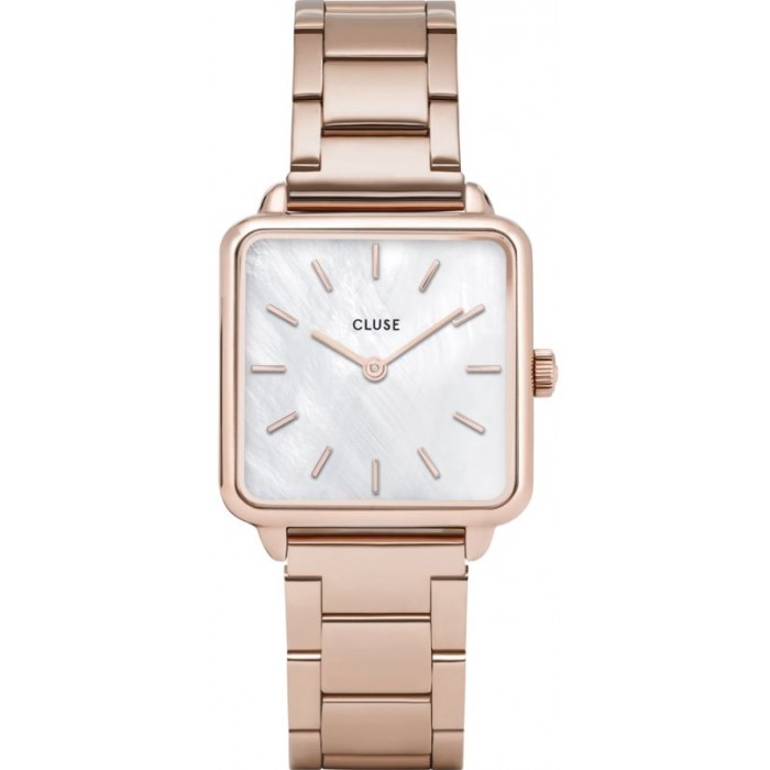 LA TÉTRAGONE ROSE GOLD CL60027S  wyposażono w niezawodny, japoński mechanizm kwarcowy MIYOTA VJ20, który z niezwykłą precyzją porusza wskazówkami po idealnie wykończonej tarczy zegarka wykonanej ze srebrnej masy perłowej. Całość chroni szkiełko mineralne o perfekcyjnej przejrzystości.