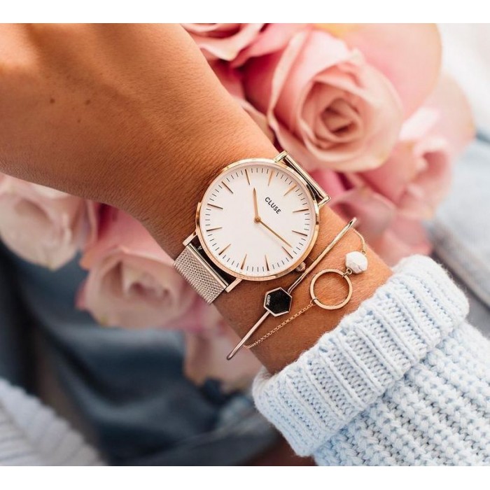Zegarek CLUSE CW0101201001 to piękny i modny dodatek do każdej kobiecej stylizacji. Zarówno koperta jak i bransoleta wykonane zostały z wysokiej jakości stali szlachetnej 316L w kolorze różowego złota. Tradycyjna biała tarcza z bransoleta typu mesh to idealne połączenie.
