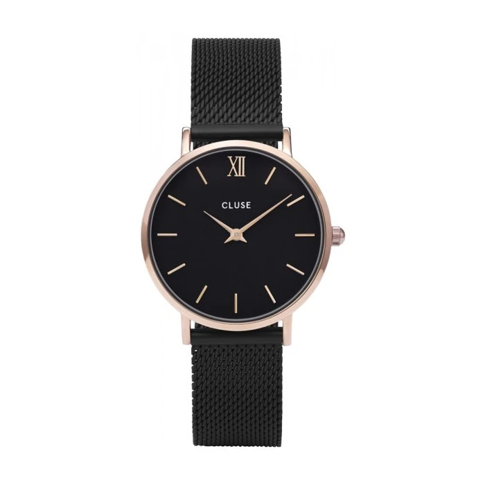 Zegarek CLUSE Minuit CW0101203024 jest doskonałą ozdobą damskiego nadgarstka. Wykończony w kolorze czarnym z domieszką złota doskonale sprawdza się zarówno na co dzień, jak i na specjalne okazje. Koperta oraz bransoleta wykonane są ze stali szlachetnej, pokrytej warstwą PVD. Na przejrzystej tarczy znajdują się logo producenta, wskazówki oraz indeksy, które ułatwiają odczytanie godziny. Całość przykrywa wysokiej jakości szkiełko mineralne, chroniące czasomierz przed uszkodzeniami czy typowymi zarysowaniami. Model ten napędzany jest dzięki zastosowaniu mechanizmu kwarcowego, który gwarantuje precyzyjne odmierzanie czasu. Zegarek CLUSE Minuit CW0101203024 ma wodoszczelność klasy 3 ATM (30 m), co oznacza, że jest on odporny na działanie kropel wody, ale nie należy z nim pływać.