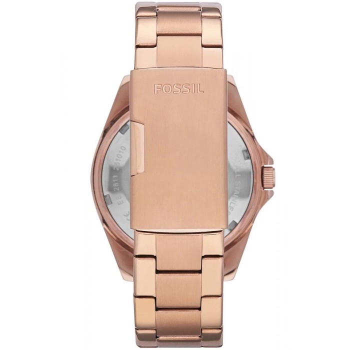 Zegarek FOSSIL ES2811 wyposażono w analogowe wskazanie czasu, dzięki temu odczyt jest prosty i intuicyjny. Rozbudowany datownik w formie dwóch giloszowanych subtarczy, wskazuje aktualny dzień miesiąca oraz nazwę dnia tygodnia. 24-godzinne wskazanie czasu pozwala na rozróżnienie godzin przed- i popołudniowych. Różowe złocenie dodaje zegarkowi subtelności i delikatności.