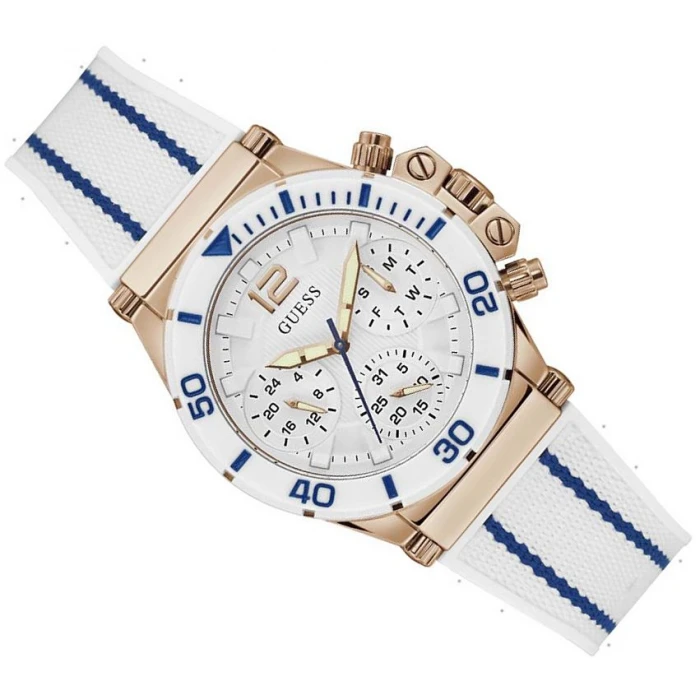 GUESS - amerykańska marka założona przez dwóch projektantów, braci pochodzących z Francji - Paula i Maurice'a Marciano którzy w nieszablonowy sposób połączyli francuską elegancję z amerykańskim poczuciem wolności. Marka zaczęła wieść prym w modzie niemal od chwili jej powstania tj. 1981r. Niebanalny design jaki reprezentuje marka GUESS trafił w gust ludzi młodych i bezkompromisowych. Już po dwóch latach od powstania marka wprowadziła na rynek zegarki. Pierwsza kolekcja została przyjęta entuzjastycznie nie tylko przez miłośników marki ale szersze grono odbiorców, których przyciągał ciekawy design oparty na szyku i elegancji. Projektując zegarki firma przywiązuje szczególna uwagę na odpowiedni dobór materiałów takich jak: skóra, stal chirurgiczna czy metale szlachetne. Stosując szlachetne materiały, odważną kolorystykę i ponadczasowy fason udało się połączyć niemożliwe jak ogień z wodą. Marka GUESS zyskuje sobie fanów na całym świecie a ich przedstawicielami były i są gwiazdy światowego formatu, takie jak: Jennifer Lopez, Drew Barrymore, Carla Bruni czy Naomi Campbell. Duży wybór zegarków oparty przede wszystkim na biżuteryjnym i eleganckim wzornictwie może trafić w gust niemal każdej kobiety dla której liczą się ponadczasowy szyk i niewymuszona elegancja.