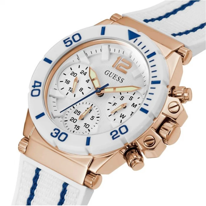 Guess GW0406L2 to modny zegarek damski w sportowym stylu z multi-datownikiem na wygodnym silikonowym pasku.