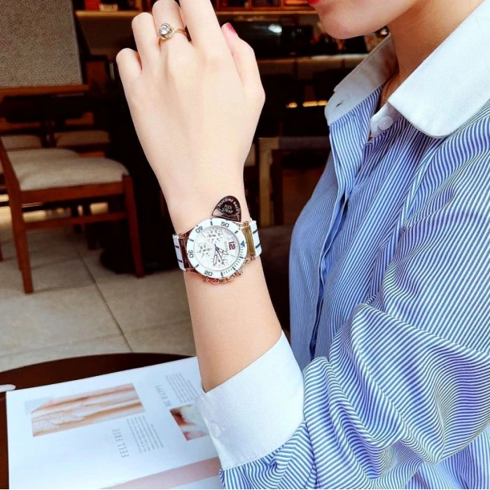Modny zegarek damski z multi-datownikiem.