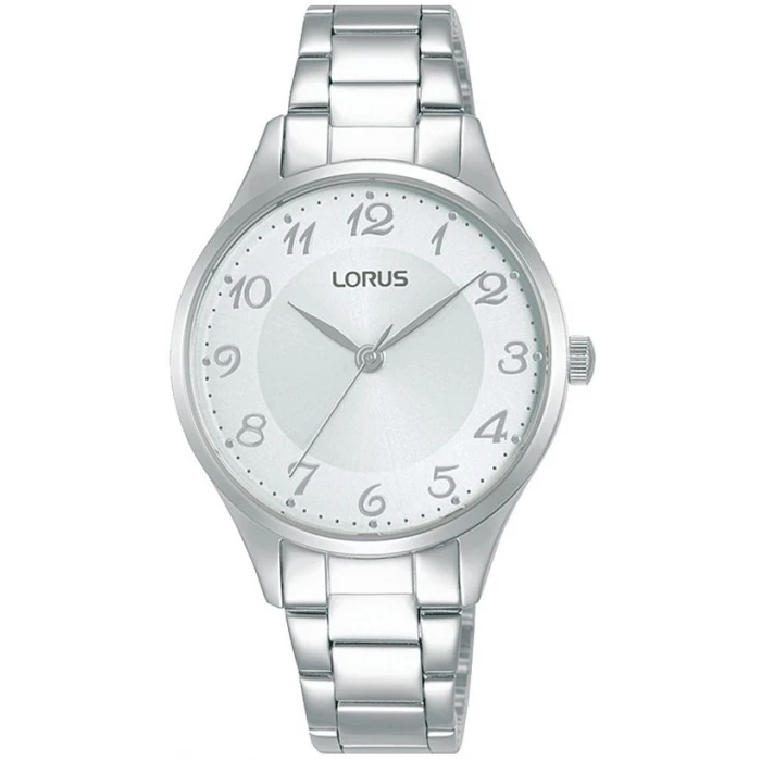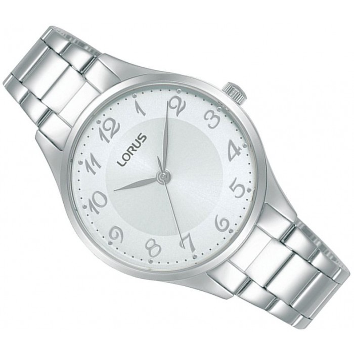 Zegarek Lorus RG267VX9 wyróżnia się elegancką, okrągłą kopertą o średnicy 32 mm, wykonaną ze stali szlachetnej w srebrnym kolorze, która idealnie komponuje się z delikatnym nadgarstkiem. Biała tarcza z ciekawie stylizowanymi cyframi arabskimi w miejscu indeksów i srebrne wskazówki zapewniają doskonałą czytelność, a segmentowa bransoleta ze stali szlachetnej z zapięciem motylkowym gwarantuje wygodę i trwałość. Ten model to połączenie klasyki i nowoczesności, idealne do wieczorowych sukni, biznesowych stylizacji czy codziennych outfitów.