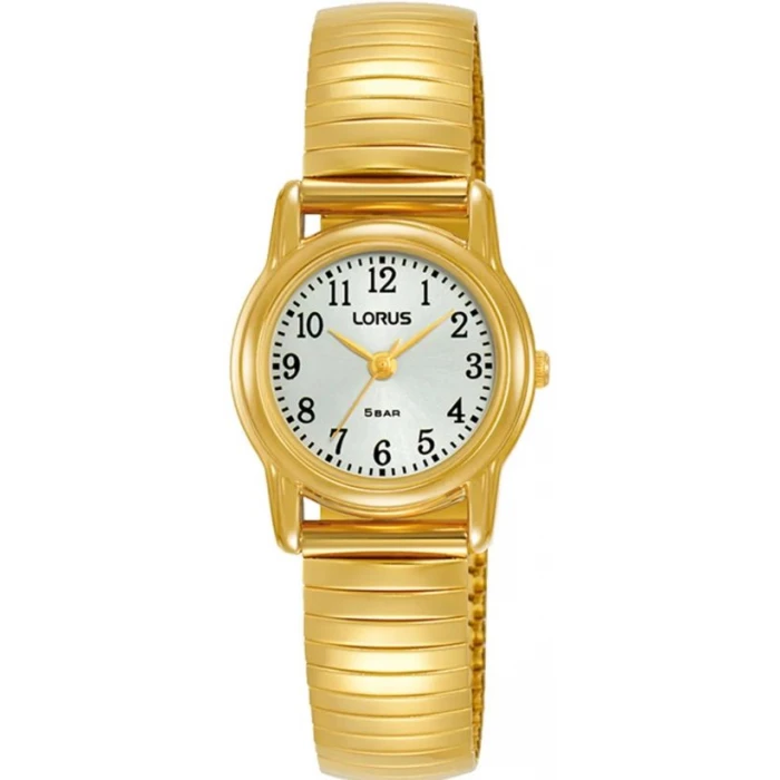 Lorus RRX34HX9 elegancki zegarek damski w klasycznej kolorystyce z indeksami w postaci cyfr arabskich. Wyposażony w niezawodny mechanizm kwarcowy zasilany baterią. Bałą tarczę pokrywa szkiełko mineralne. Koperta w złotym kolorze wykonana została z chirurgicznej stali szlachetnej, która jest hipoalergiczna, trwała i daje pełen komfort podczas użytkowania. Całość zawieszono na stalowej, rozciąganej bransolecie, która idealnie dopasuje się do każdej ręki. Wodoszczelność na poziomie 5 ATM (50m) czyli odporność na zachlapania i krótkotrwałe zanurzenie w wodzie.