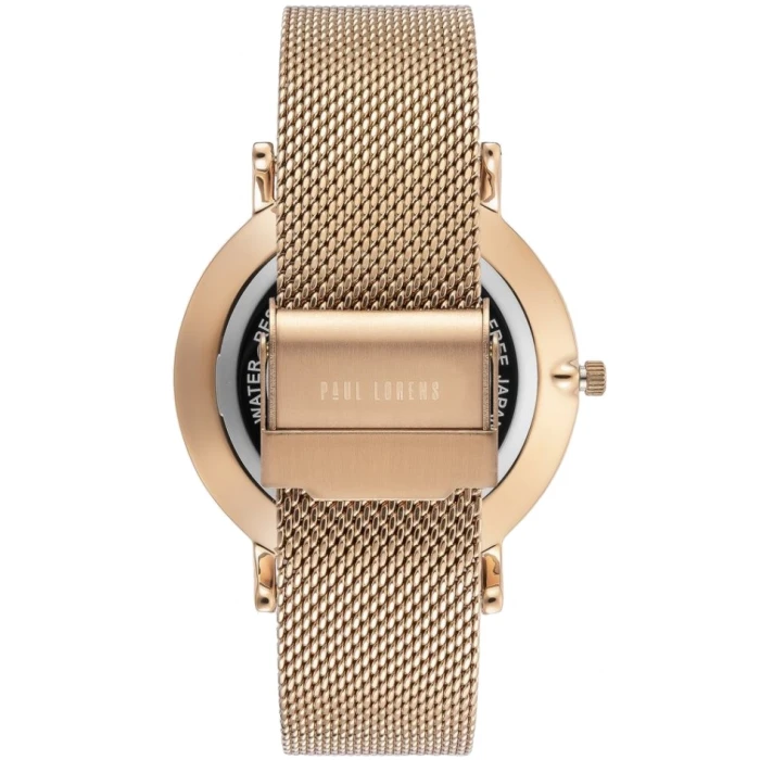 Zegarek polskiego projektanta Paul Lorens wykonany  został z wysokiej jakości stopu metali, koloryzowanego trwałą powłoką IPS. W zegarku PAUL LORENS PL11989B7-1D3 zastosowano naturalne szkiełko mineralne, które ma podwyższoną odporność na zarysowania. Tarcza modelu PAUL LORENS PL11989B7-1D3 zaprojektowana zgodnie z najnowszymi trendami designerskimi zgodnymi z włoską stylistyką. Klasyczna, okrągła koperta i czytelna tarcza zegarka w połączeniu z modną bransoletą typu mesh tworzą ponadczasowy, a przede wszystkim bardzo kobiecy zegarek.